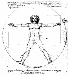 К такой картинке, по сути воспроизводящей пентаграмму, неоднократно прибегал и Леонардо да Винчи. Ее интерпретация: тело человека обладает божественным совершенством, ибо заложенные в нем пропорции - такие же, как в главной небесной фигуре. Леонардо да Винчи, художник и ученый, видел, что у итальянских художников эмпирический опыт большой, а знаний мало. Он задумал и начал писать книгу по геометрии, но в это время появилась книга монаха Луки Пачоли, и Леонардо оставил свою затею. По мнению современников и историков науки, Лука Пачоли был настоящим светилом, величайшим математиком Италии в период между Фибоначчи и Галилеем. Лука Пачоли был учеником художника Пьеро делла Франчески, написавшего две книги, одна из которых называлась "О перспективе в живописи". Его считают творцом начертательной геометрии.