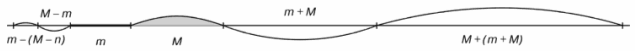 Если на прямой произвольной длины, отложить отрезок m, рядом откладываем отрезок M. На основании этих двух отрезков выстраиваем шкалу отрезков золотой пропорции восходящего и нисходящего рядов
