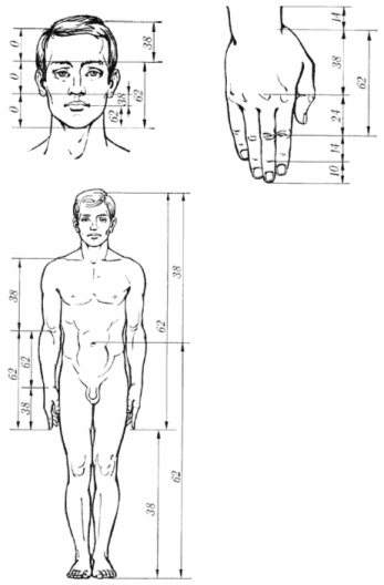 | Рис. 4. Золотые пропорции в частях тела человека |