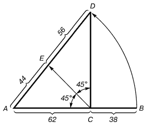 Деление осуществляется следующим образом. Отрезок АВ делится в пропорции золотого сечения. Из точки С восставляется перпендикуляр СD. Радиусом АВ находится точка D, которая соединяется линией с точкой А. Прямой угол АСD делится пополам. Из точки С проводится линия до пересечения с линией AD. Точка Е делит отрезок AD в отношении 56 : 44.