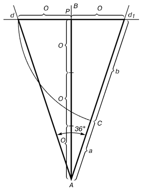 | Рис. 10. Построение золотого треугольника |
