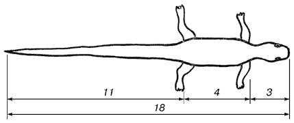 В ящерице с первого взгляда улавливаются приятные для нашего глаза пропорции - длина ее хвоста так относится к длине остального тела, как 62 к 38.
